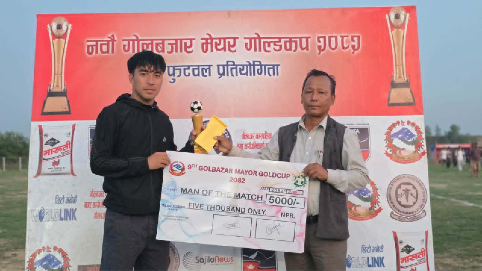 गोलबजार । सिरहाको गोलबजार नगरपालिकाद्वारा आयोजित नवौँ गोलबजार मेयर गोल्डकप फुटबल प्रतियोगिताको दोस्रो दिनको खेलमा सलहेश युवा क्लब, सिरहा विजयी भएको छ।