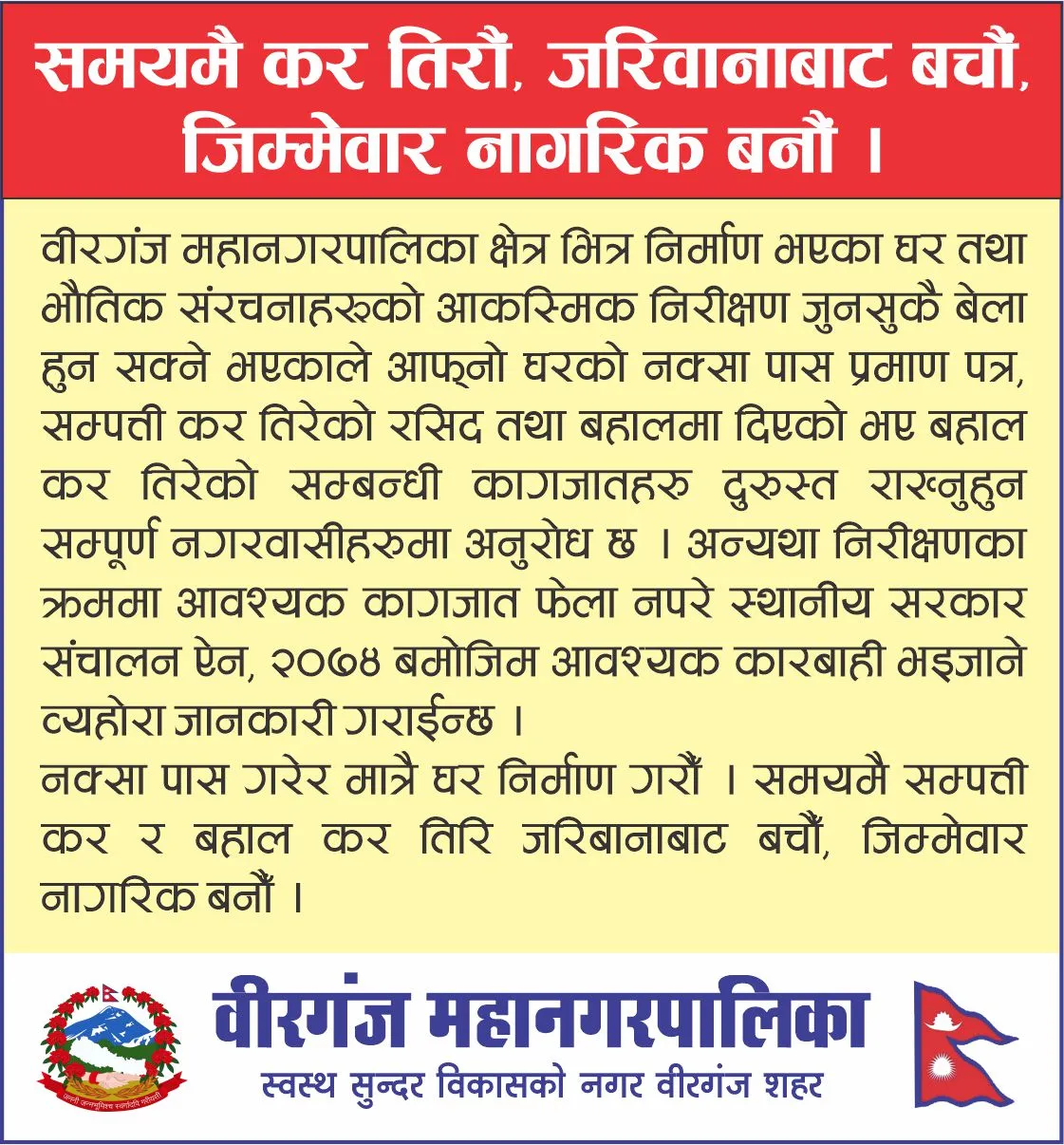 वीरगंज । वीरगंज महानगरपालिकाले फोहोरमैला व्यवस्थापनलाई दिगो, वैज्ञानिक र वातावरणमैत्री बनाउन ऐतिहासिक कदम चालेको छ।