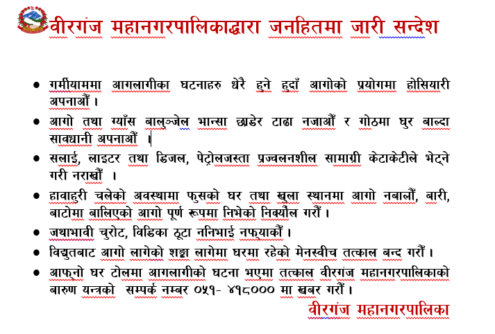 वीरगन्ज । पर्सा जिल्लाको वीरगन्जमा देखिएको हैजा (कोलेरा) प्रकोपले राज्यका सबै संयन्त्रलाई एकैसाथ परिचालन गरेको छ।