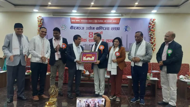 वीरगञ्ज । वीरगञ्ज उद्योग वाणिज्य संघको ४८ औं साधारसभा बीरगंजमा सोबवार सम्पन्न भएको छ । साधारणसभाको नेपाल उद्योग वाणिज्य महासंघका अध्यक्ष चन्द्र ढकालले उदघाटन गरेका थिए ।