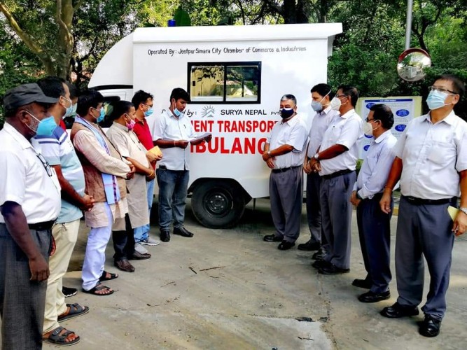 बाराको जीतपुर सिमरा उपमहानगरपालिकामा रहेको बहुराष्ट्रिय कम्पनी सूर्य नेपाल प्रालिले जितपुरसिमरा नगर उद्योग बाणिज्य संघलाई अत्याधुनिक एम्बुलेन्स उपलब्ध गराएको छ।