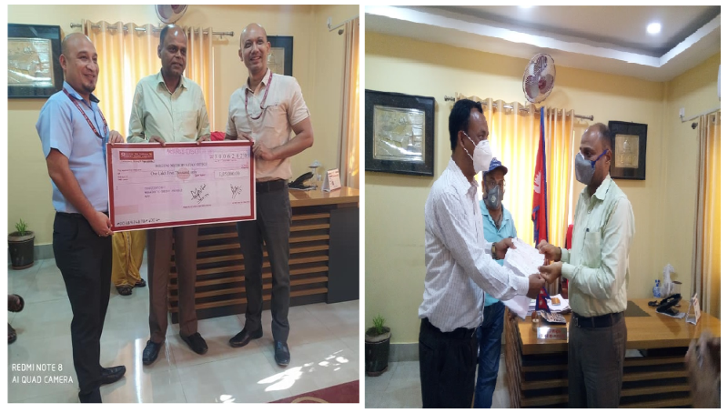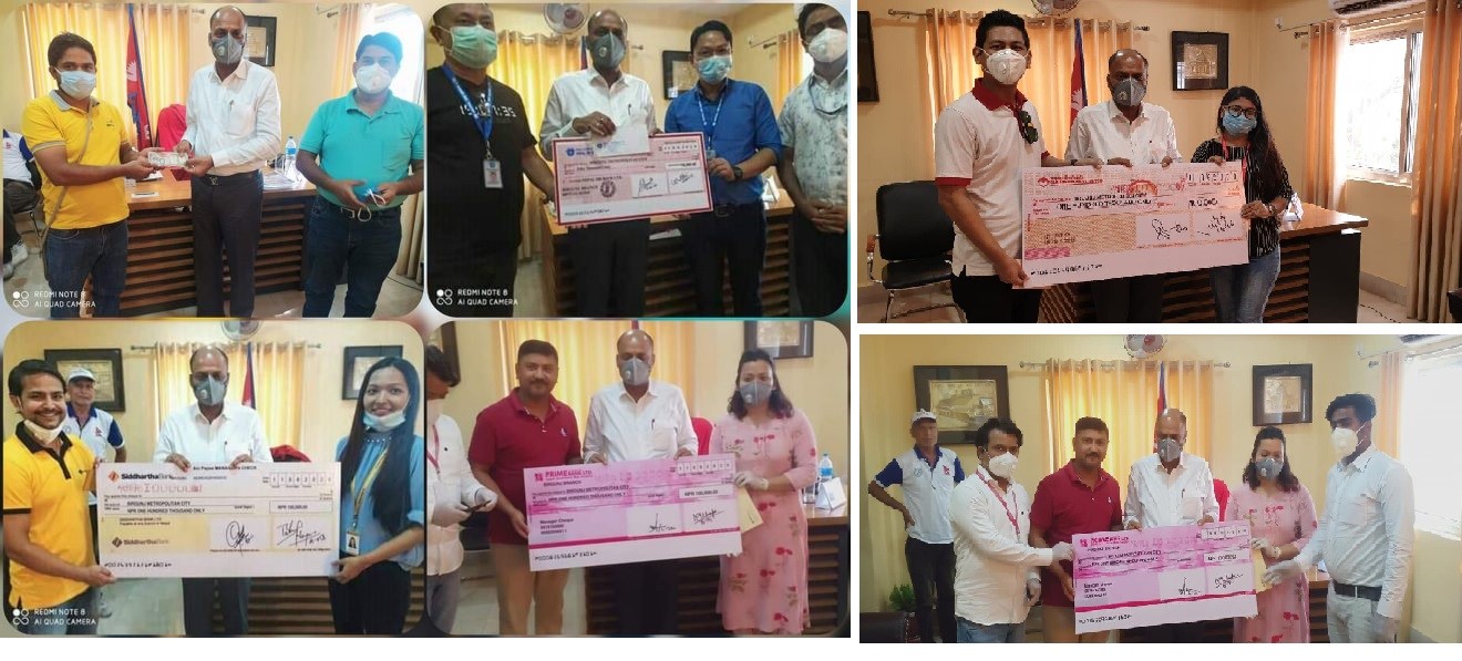 बैंकका प्रतिनिधिहरुले महानगरपालिकाका नगर प्रमुख विजय कुमार सरावगीलाई कार्यकक्षमै भेटेर एभरेष्ट बैंकको तर्फबाट १ लाख पाँच हजार र कर्पोरेट डेभलपमेण्ट बैंकको तर्फबाट २ लाख नगदको चेक हस्तान्तरण गरेका छन् ।