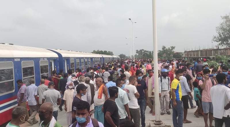 नेपाली झण्डामा भएको रंगद्वारा रंगिएको दुई सेट रेल जनकपुरधाम आइसकेको छ । भारतको सरकारी कम्पन्नी कोंकर रेलवेज कर्पोरेसन लिमिटेडले निर्माण गरेको नयाँ दुईसेट रेल जनकपुरधाम आइपुगेको हो ।