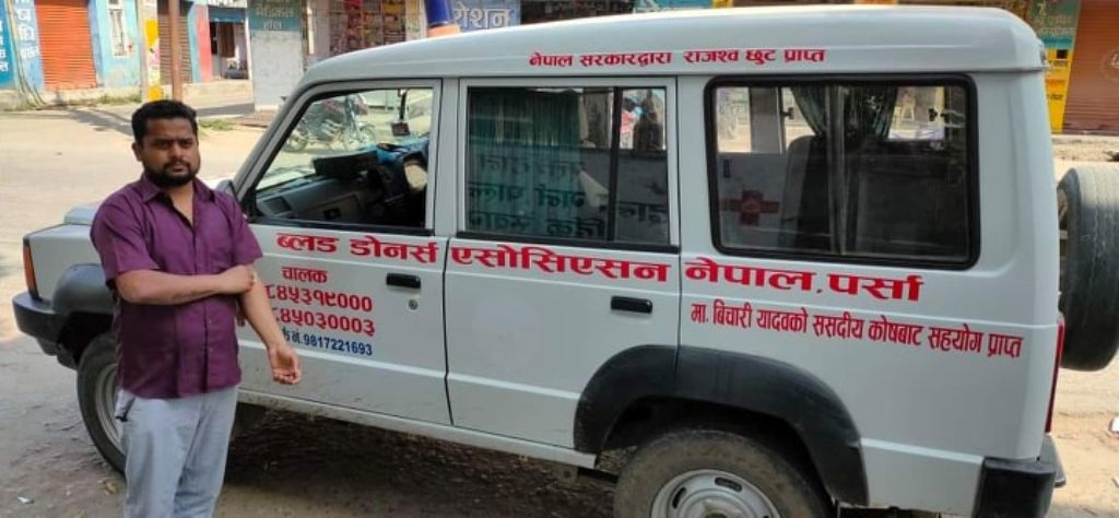 ब्लड डोनर्स एसोसिएसन नेपाल पर्साले रक्तदान गर्न चाहने रक्तदातालाई एम्बुलेन्स सेवा उलब्ध गराउने निर्णय गरेको छ