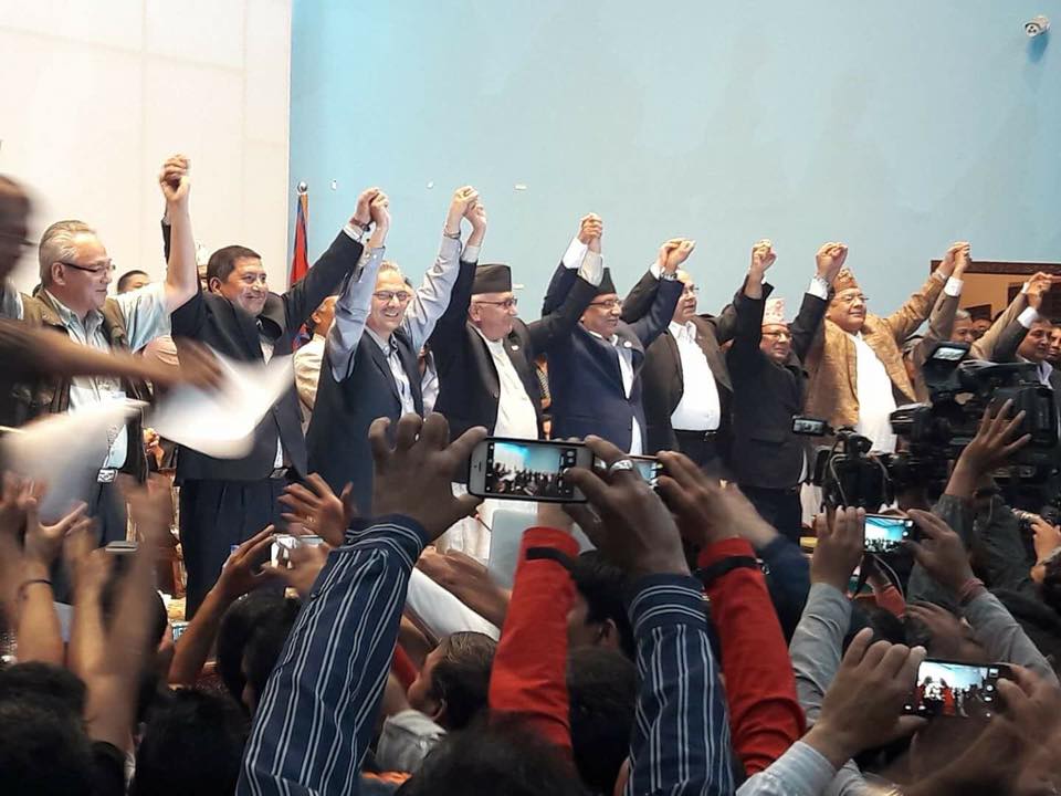 काठमाडौं १७ असोज । नेकपा एमाले, नेकपा माओवादी केन्द्र र नयाँ शक्ति नेपालबीच ६ बुँदे सहमति भएको छ । आगामी प्रतिनिधिसभा र प्रदेशसभा चुनावमा तालमेल गर्ने र लगतै एउटै कम्युनिष्ट पार्टी बनाउने गरि सहमती कायम भएको हो ।