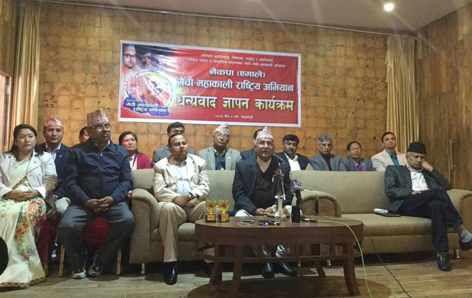 काठमाडौं, ८ चैत । नेकपा एमालेका अध्यक्ष केपी शर्मा ओलीले दुई नम्बर प्रदेशमा एमाले अझ प्रभावकारी रुपमा जाने बताएका छन् । पार्टीले सञ्चालन गरेको मेची–महाकाली राष्ट्रिय अभियानको क्रममा स्वयम्सेवक, सञ्चारकर्मी, स्वास्थ्यकर्मी, साँस्कृतिककर्मीलगायत विभिन्न क्षेत्रबाट सहयोग गर्ने व्यक्तिहरूलाई सम्मान तथा धन्यवाद ज्ञापन कार्यक्रमलाई सम्बोधन गर्दै ओलीले दुई नम्बर प्रदेशमा एमाले अझै प्रभावकारी भएर जाने घोषणा गरे । ‘निर्वाचनको वातावरण बनाउन, एमालेविरुद्ध छरिएका भ्रमहरु चिर्न दुई नम्बरमा एमाले अझ प्रभावकारी भएर जान्छ’ उनले भने ः ‘पस्न दिन्न भन्ने कुरा मान्य र स्वीकार्य हुन सक्दैन् ।’