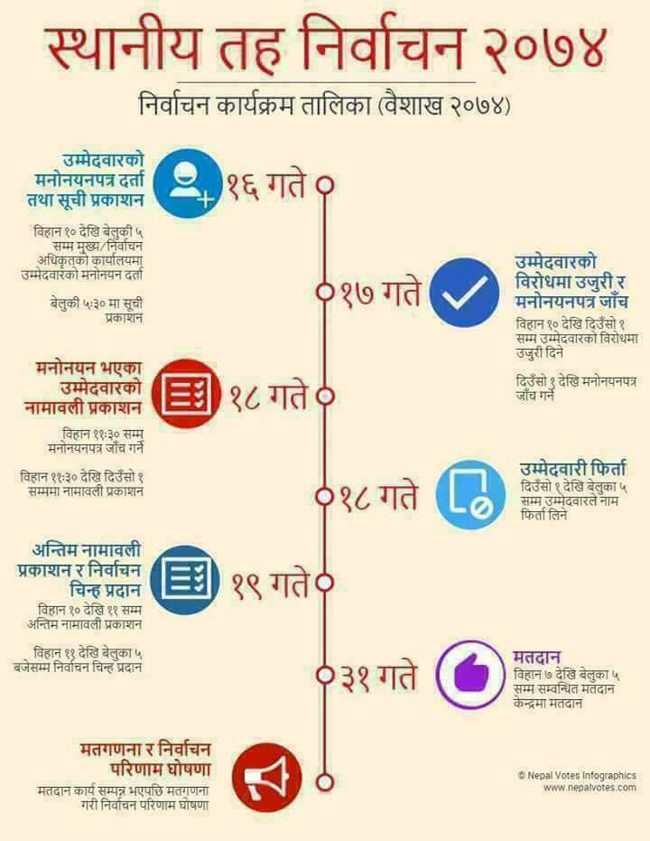 बैशाख ३१ मा हुने निर्वाचनकालागि आयोगले सार्वजनीक गरेको कार्यतालिका भने यस्तो छ ।