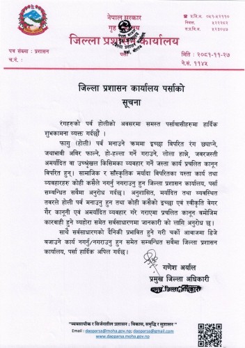 वीरगंज । वीरगंज महानगरपालिकाले बीरगंज भित्र रहेका मठ, मन्दिर, चैत्य, गुम्बा, मस्जिदलगायत धार्मिक संस्थाहरूलाई ७ दिनभित्र आवश्यक विवरण बुझाउन पत्र काटेको छ ।