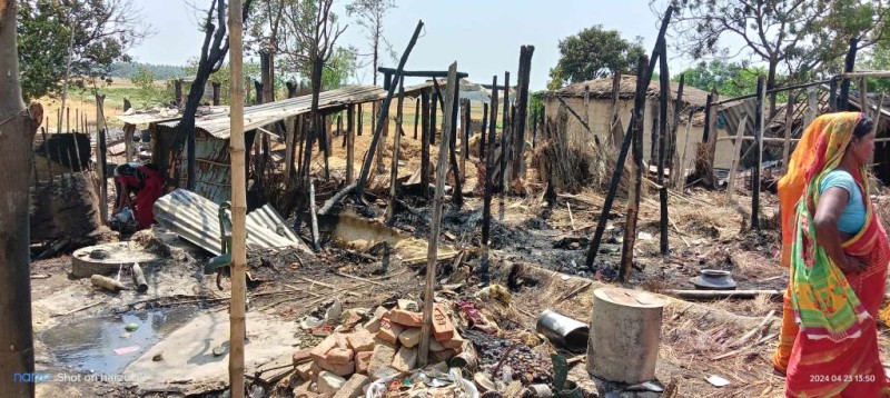 वीरगञ्ज । वीरगञ्ज महानगरपालिका–१७ स्थित अलौमा मंगलवार बिहान आगलागी हुँदा करिब ५४ लाख बराबरको धनमाल जलेर नष्ट भएको । सातवटा घर जलेका छन्।