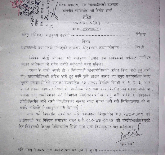 काठमाडौं । सर्वोच्च अदालतले ललिता निवास जग्गा हिनामिना प्रकरणमा तत्कालीन प्रधानमन्त्री माधवकुमार नेपाल र डा. बाबुराम भट्टराईमाथि मुद्दा नचलाउनुको कारण मागेको छ ।