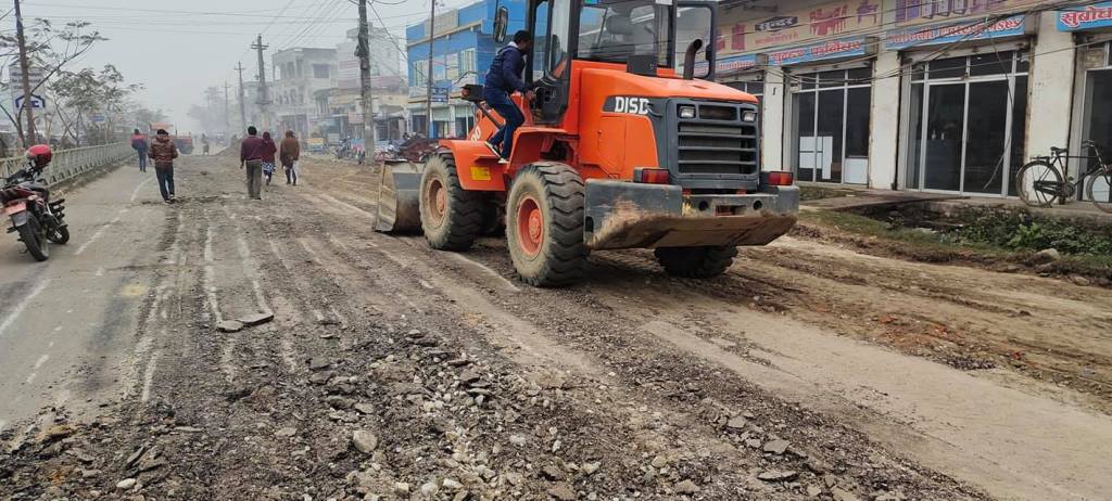 वीरगन्जको घण्टाघर चोक देखि पावरहाउस चोक सम्मको मुख्य सडक मर्मत सम्भारको काम आज देखि शुरु गरिएको छ । घण्टाघर देपख पावर हाउस चोक सम्म बाँया पट्टीको कालोपत्रे सडक ठाँउ ठाँउमा उप्किएर खाल्डा खुल्डी पर्दा सवारीसाधन र यात्रुलाइ सास्ती भएको गुनासो आएपछि महानगरपालिकाले आज देखि उक्त सडकको मर्मत सम्भारको काम शुरु गरेको हो । पुरानो कालोपत्रे उप्क्याएर त्यसको ठाँउमा नयाँ कालो पत्रे गर्न थालिएको हो ।