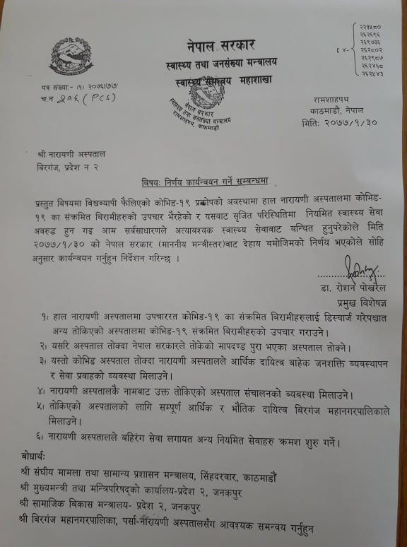 अन्तत बीरगंजको गण्डक अस्पतालमा कोभिड १९ अस्पताल संचालनमा आउने भयो