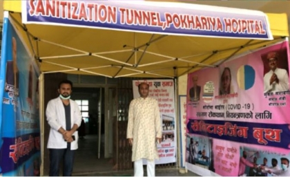 तारादेवी सरावगी तथा मुकेश सरावगीको आर्थिक सहयोगमा निर्माण भएको स्यानीटाइजर बुथ शनिवार पोखरियामा रहेको जिल्ला अस्पतालमा स्थापना गरिएको छ