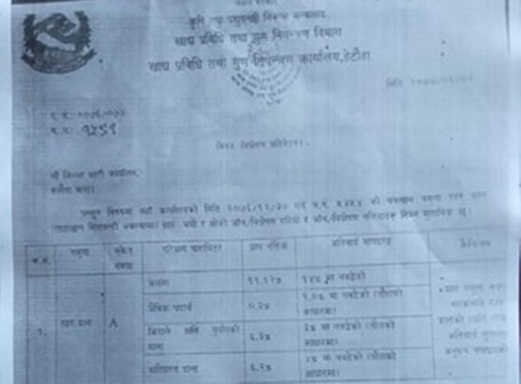राहत बितरणमा अखाद्य दालको आपूर्ती र कालो बजारी गरेको आरोपमा बारा प्रहरीले बीरगन्जस्थित धनलक्ष्मी दाल मिलका सञ्चालक तेजकरण शर्मालाई पक्राउ गरेको छ