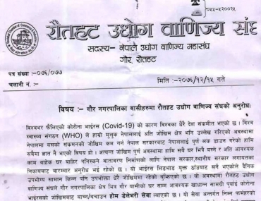 रौतहट उधोग वाणिज्य संघले गौर नगरवासीलाई खाद्य सामाग्री घर घरमै पुर्याउने ब्यवस्था मिलाएको छ