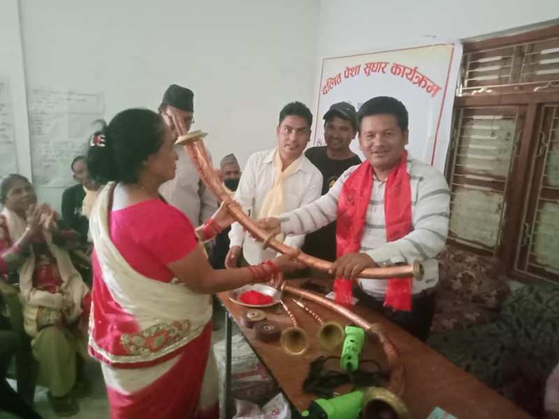 ठोरी गाउँपालिकाले ठोरी गाउँपालिकाको दलित समुदायलाई नेपालकै साँस्कृतिक पहिचान बोकेको नौमती बाजा सहित पेशा सुधारका सामाग्रीहरु वितरण गरेको छ