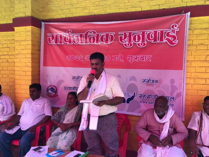बारा जिल्लाको परवानीपुर गाउँपालिकाको सार्वजनिक सुनुवाई कार्यक्रम सम्पन्न भएको छ