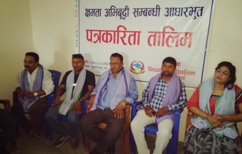 क्षमता अभिबृद्धिकालागि आधारभूत पाँचदिने पत्रकारिता तालिम पर्सा जिल्लाको बिन्दवासीनी गाउँपालिकामा आज देखी शुरु भएको छ