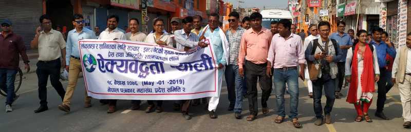 नेपाल पत्रकार महासंघ प्रदेश समिति २ ले प्रेस तथा अभिव्यक्ति स्वतन्त्रताका लागि ऐक्यवद्धता र्याली निकालेको छ
