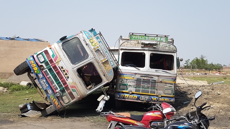 आईतबार साँझ आएको भीषण हावाहुरीले बारा र पर्सामा गरी करोडौंका भौतिक क्षति भएको छ । आँधीहुरीले पर्सामा १ र बारामा २७ गरि २८ जनाको ज्यान लिएको छ ।