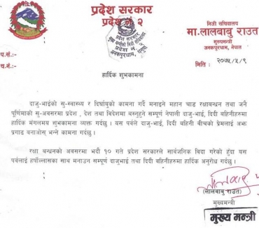 प्रदेश सरकारले मुस्लिम धर्मावलम्बीहरुको दोस्रो ठूलो चाड इद–ऊल–जोहा (वकरिद) को अवसरमा भाद्र ६ गते बुधवार सार्वजनिक विदा दिने घोषणा गरेको छ