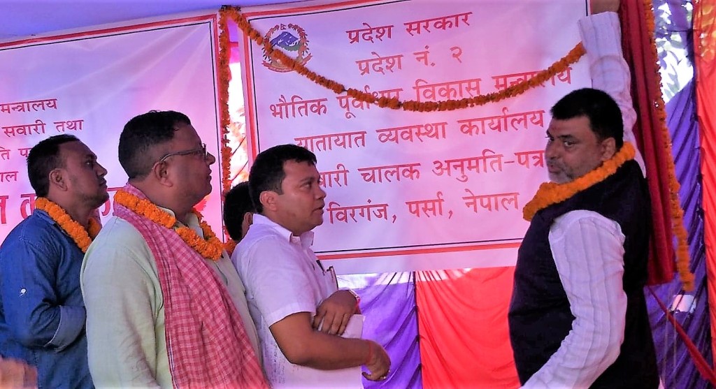 प्रदेश २ को भौतिक पूर्वाधार विकास मंत्री जितेन्द्र सोनलले शुक्रवार बीरगंजमा यातयात ब्यवस्था काार्यलयको नयाँ बोर्ड अनावरण गरेका छन