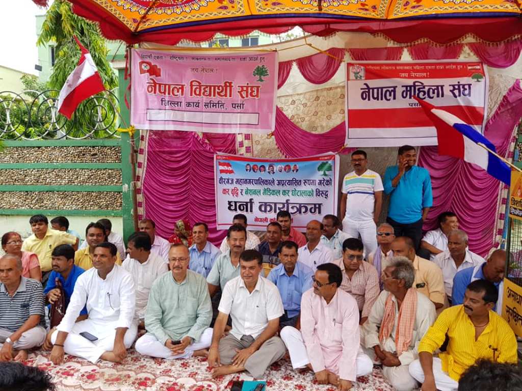 नेपाली कांग्रेस पर्साले बीरगंज महानगरको करबृद्धिको बिरोधमा महानगरपालिकाको कार्यालयमा एक घण्टे धर्ना दिएका छन । बढाइएको कर फिर्ता लिन माग गर्दै नेपाली कांग्रेसले धर्ना दिएको हो