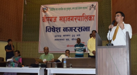 बीरगंज महानगरपालिकाले साउन २२ गतेकालागि बिशेष नगरसभा बोलाउने निर्णय गरेको छ । बुधवार सम्पन्न नगर कार्यपालिकाको बैठकले बिशेष नगर सभा बोलाउने निर्णय गरेको हो