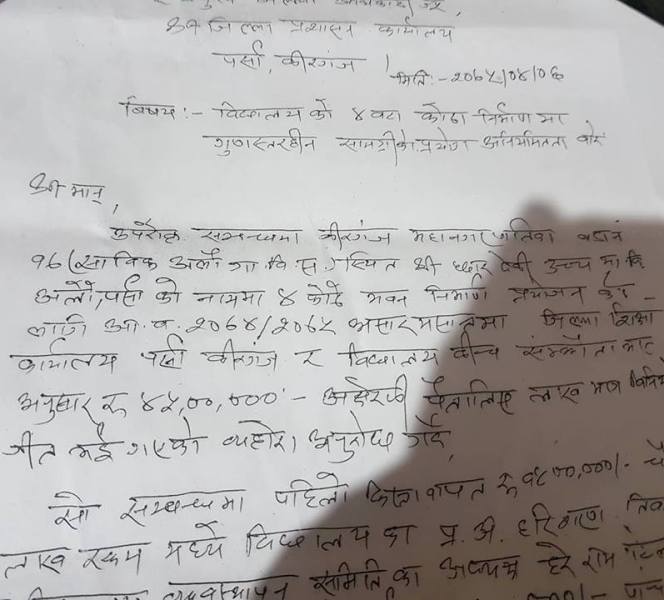 नेपाली कांग्रेसको बीरगंज महानगरपालिकाको वडा नं १७ अलौको वडा समितिले आफनो वडामा भएको बिकास निर्माणको काममा अनियमितता भएको भन्दै पर्साका प्रमुख जिल्ला अधिकारी समक्ष उजुरी गरेको छ