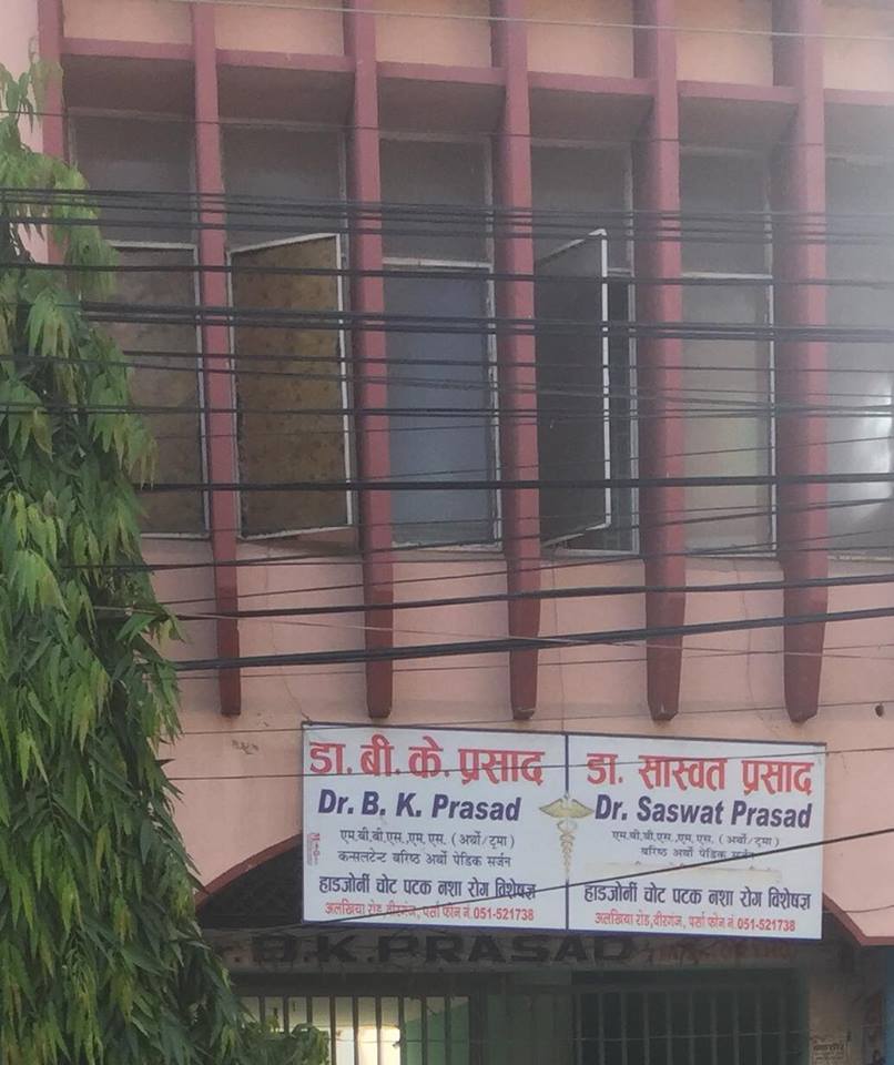 तीन वर्ष पहिले निधन भएको डा। बिके प्रसादको साइनबोर्ड झुन्डयाएर उनका छोरा डा। शाश्वतप्रसादले बिरामीहरूको चेकजाँच गर्दैछन्