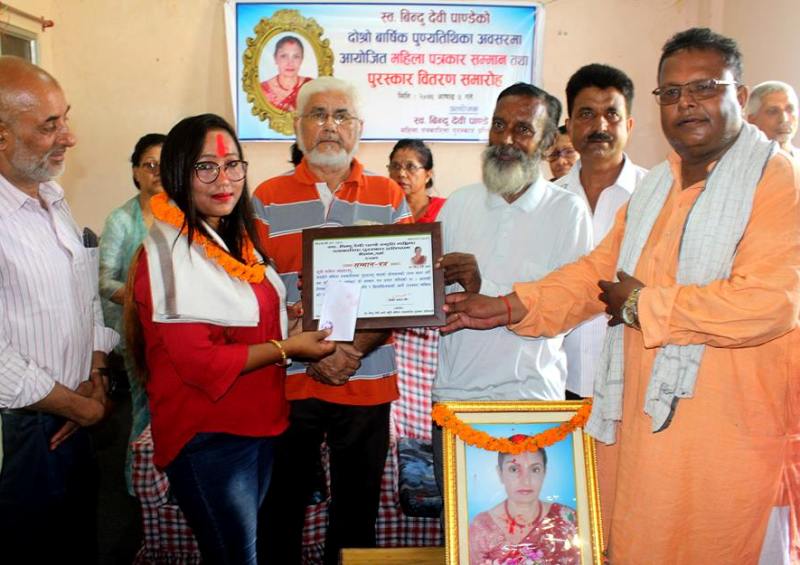 स्व.विन्दु देवी पाण्डेको स्मृतिमा स्थापित महिला पत्रकारीता पुरस्कार २०७५ बाट पत्रकार कविता खड्का पुरस्कृत भएकी छिन्