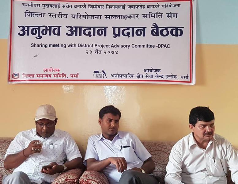 जिल्ला समन्वय समिति पर्सा र अनौपचारिक क्षेत्र सेवा केन्द्र (इन्सेक) को आयोजनामा स्थानीय समुदायलाई सचेत पार्दै जिम्मेवार निकायलाई जवाफदेह बनाउने परियोजनाको जिल्लास्तरीय परामर्श बैठक शुक्रवार गते जिल्ला समन्वय समिति पर्सामा सम्पन्न भएको छ