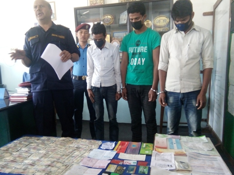 लट्री परेको भनि प्रलोभन देखाइ ठगी गर्ने गिरोहका ३ जनालाई पर्सा प्रहरीले पक्राउ गरी सार्बजनिक गरेको छ