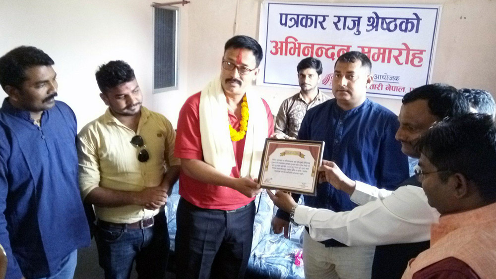 प्रेस चौतारी नेपाल पर्सा शाखाले पत्रकार राजु श्रेष्ठलाई बिहीबार अभिनन्दन गरेको छ ।