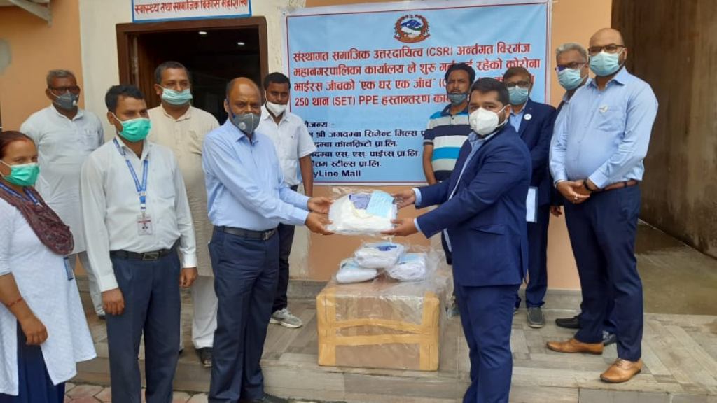 बीरगंज महानगरपालिकाको स्वास्थ्य महाशाखा मार्फत कोरोना भाइरसको संक्रमण नियन्त्रण र रोकथामको काममा संलग्न स्वास्थ्यकर्मीहरुकालागि नीजि क्षेत्रले स्वास्थ्य सुरक्षा सामाग्री उपलध्ग गराएको छ ।