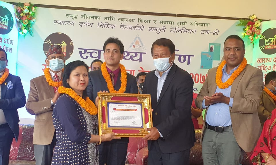 नेपाल टेलिभिजनमा प्रसारण हुने स्वास्थ्य दर्पण मिडिया द्वारा कोविड १९ महामारीमा महिला स्वास्थ्य क्षेत्रमा पुर्याएको योगदानका वापत पर्सा जिल्लाका दुईजना चिकित्सक सम्मानित भएका छन् ।