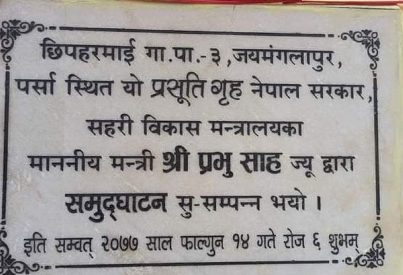 पर्सा जिल्लाको छिपहरमाई गाउँपालिका वार्ड न. –३ जयमँगलापुरमा रहेको नवनिर्मित बर्थिग सेन्टर भवनको उद्घाटन गरिएको छ ।