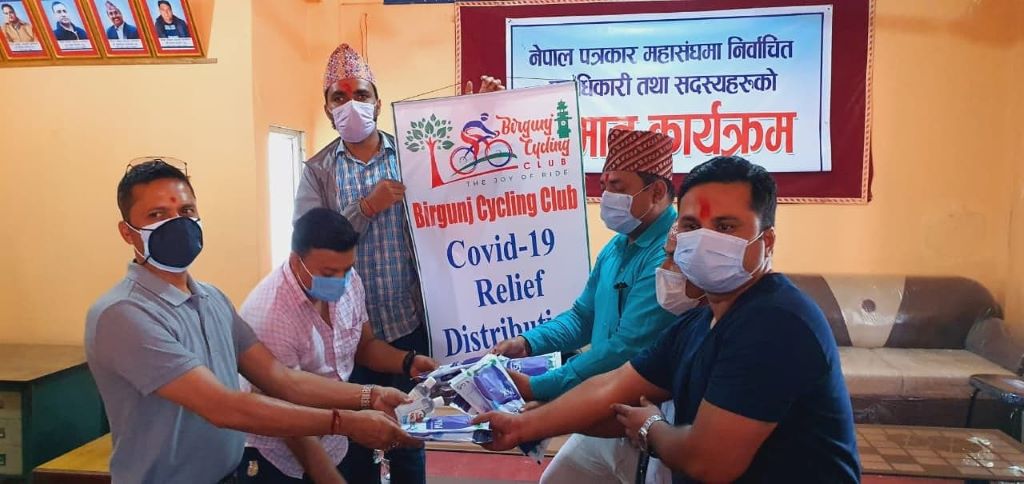 वीरगन्ज साइकिलिंग क्लबले नेपाल पत्रकार महासंघ पर्सा शाखालाई आज तीन हजार मास्क तथा ५० वटा सेनेटाइजनर हस्तान्तरण गरेको छ ।