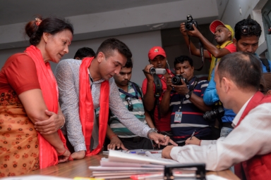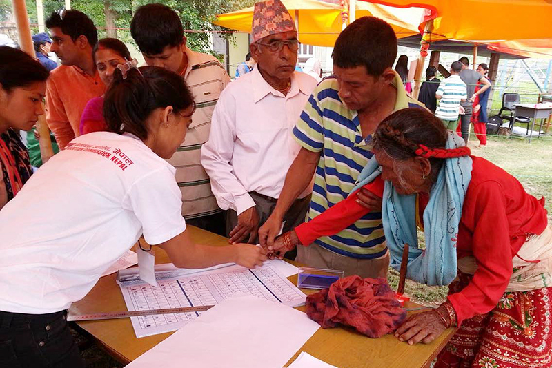 ७८ बर्षीय मन कुमारी भुजेल, रामेछापको को सदरमुकाम मन्थलीको हवाये मैदानमा मतदान गर्दै । तस्विरः पंकज श्रेष्ठ