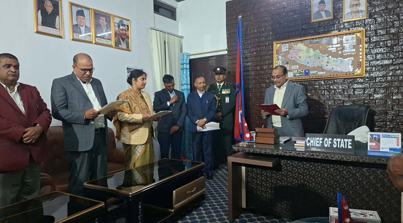 जनकपुर । मधेस प्रदेशका मुख्यमन्त्री कृष्णप्रसाद यादवले मन्त्रिपरिषद् विस्तार गरेका छन्। मुख्यमन्त्रीको सिफारिसमा नियुक्त भएका मन्त्रीहरूले सोमबार प्रदेश प्रमुख सुरेन्द्रलाभ कर्णसमक्ष पद तथा गोपनीयताको शपथ ग्रहण गरेका हुन्।