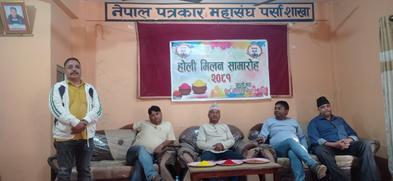 प्रेस चौतारी नेपाल पर्साले बुधवार बीरगंजमा होली मिलन समारोह आयोजना गरेको छ । नेपाल पत्रकार महासंघ पर्साको सभाकक्षमा आयोजना गरिएको कार्यक्रममा पर्सेली पत्रकारहरुको सहभागिता रहेको थियो ।