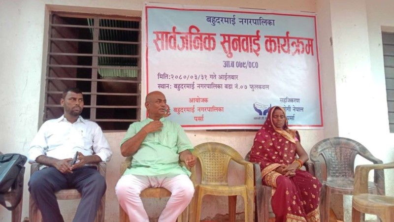 बीरगंज । बहुदरमाई नगरपालिकाको वडा न ७ फूलकवल टोलमा रहेको नेपाल प्रथामिक बिद्यालयको प्राङगणमा आइतवार सार्वजनीक सुनवाई कार्यक्रम सम्पन्न भएको छ ।