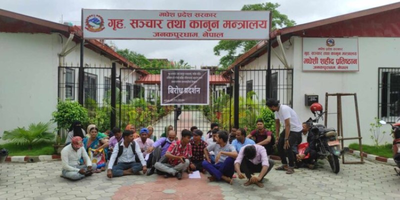 जनकपुरधाम, र । जनयुद्धका शहीद परिवारले मधेस प्रदेशको गृह, सञ्चार तथा कानुन मन्त्रालयमा तालाबन्दी गरेका छन् ।मधेस शहीद प्रतिष्ठानले दिने घोषणा गरेको ३ लाख रुपैयाँ नदिएको भन्दै उनीहरुले मन्त्रालयमा तालाबन्दी गरेका हुन् ।