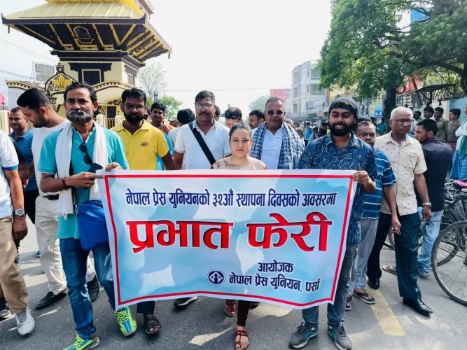 वीरगञ्ज । नेपाल प्रेस युनियनको ३२ औ स्थापना दिवसको अवसरमा वीरगंजमा प्रभात फेरी सम्पन्न भएको छ ।