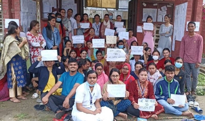 वीरगञ्ज, । वीरगञ्ज नर्सिङ क्याम्पसमा सोमबार नेपाल विद्यार्थी सङ्घले गरेको तालाबन्दी खोल्न माग गर्दै विद्यार्थीहरुले प्रदर्शन उत्रिएका छन ।