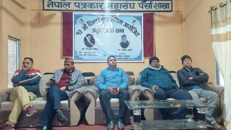 प्रेस सेन्टर नेपाल पर्साले संगठनका उपाध्यक्ष एवं नेपाल पत्रकार महासंघका केन्द्रीय सदस्य त्रिभूवन पौडेल र संचार उद्यमी अनील शाहीको स्मरणमा वीरगंजमा श्रद्धान्जली सभा सम्पन्न गरेको छ । पौडेल र शाहीको माघ १ गते यती एयरलायन्सको पोखरामा भएको बिममान दुर्घटनामा परि मृत्यु भएको थियो ।