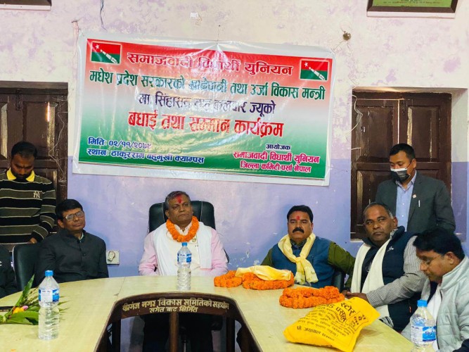 वीरगञ्ज, ।मधेश प्रदेशका ऊर्जा तथा खानेपानी विकास मन्त्री सिंहासन साह कलवारलाई मंगलवार वीरगंजमा एक कार्यक्रमकावीच सम्मान गरिएको छ ।