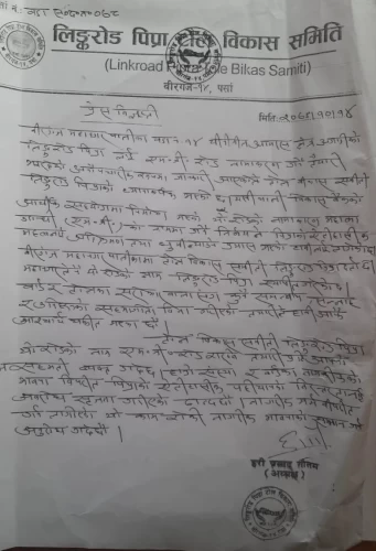 वीरगञ्ज । वीरगञ्ज महानगरपालिकाले पिप्राको लिङ्क रोडलाई महात्मागान्धी रोड नामाकरण गर्ने महानगरपालिकाको निर्णय प्रति टोल बिकास संस्था लिंकरोडले ध्यानाकर्षण भएको जनाएको छ ।