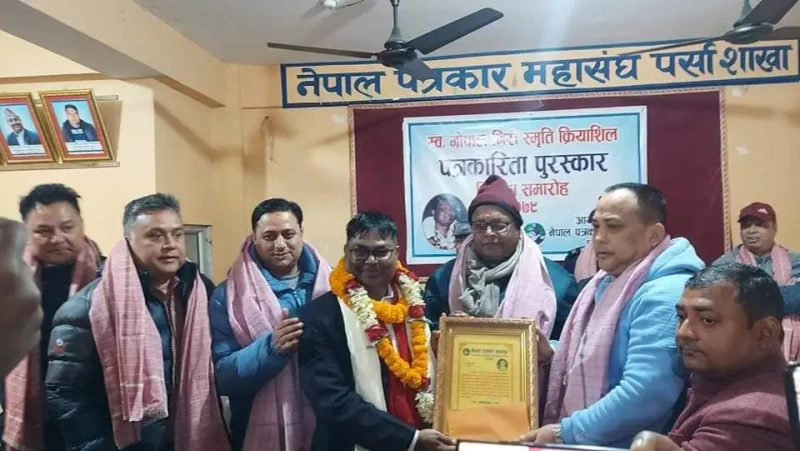 स्वर्गीय गोपाल गिरी स्मृति क्रियाशिल पत्रकारीता पुरस्कार पत्रकार महेश दासलाई प्रदान गरिएको छ ।
