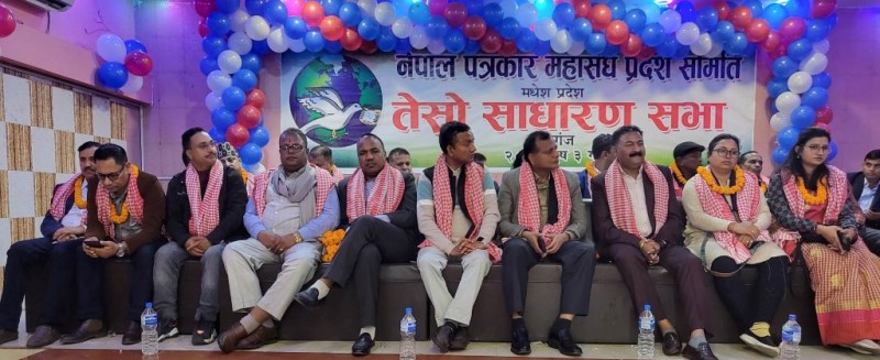 प्रदेश संचार ऐनका पत्रकार बिरोधी प्रावधानहरु संशोधन र खारेजीको लागि संघर्षको नीति पास गर्दै नेपाल पत्रकार महासंघ मधेश प्रदेश समितिको तेश्रो प्रदेश अधिवेशन वीरगंजमा सकिएको छ ।